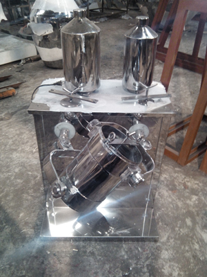 該機(jī)用于制藥、化工、食品、輕工、電子、機(jī)械、礦冶、國(guó)防工業(yè)以及各科研單位的粉狀、顆粒狀物料的高均勻度混合。該機(jī)的混合筒多方向運(yùn)動(dòng),物料無離心力作用,無比重偏析及分層、積聚現(xiàn)象,各組分可有懸殊的重量比,混合率達(dá)99.9%以上,是目前各種混合機(jī)中的一種較理想的產(chǎn)品。筒體裝料率大,最高可達(dá)80%(普通混合機(jī)僅為40%),效率高,混合時(shí)間短。